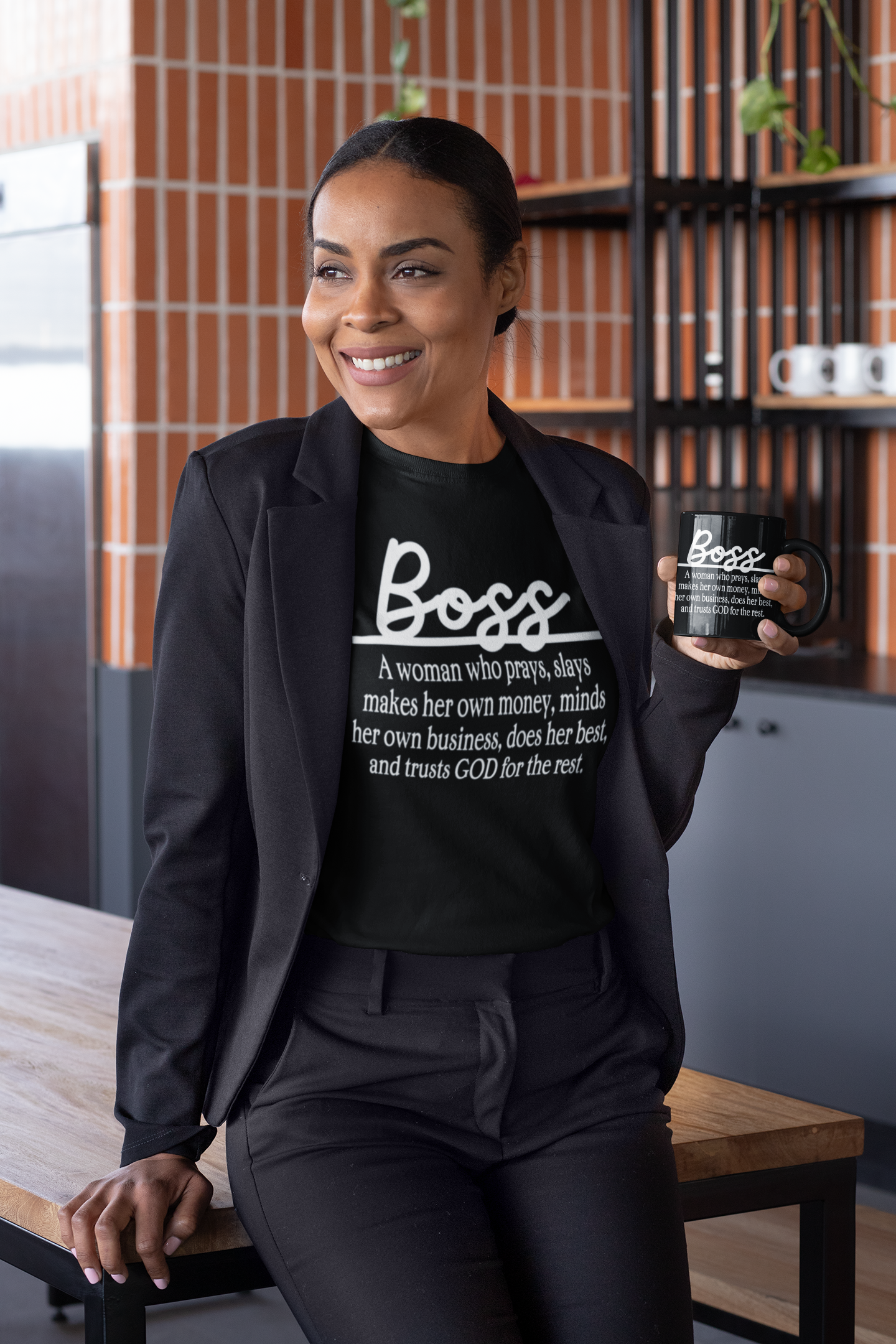 Embrace your power with the BOSS Affirmation Tee, featuring an inspiring message that celebrates strength, independence, and faith: "A woman who prays, slays, makes her own money, minds her own business, does her best and trusts god for the rest." Crafted from premium cotton with optional polyester blend, this tee delivers exceptional durability and easy care. The breathable fabric and subtle stretch move with you throughout your day, whether you're conquering goals or living authentically. Make a statement that matters—wear your values with confidence and style.